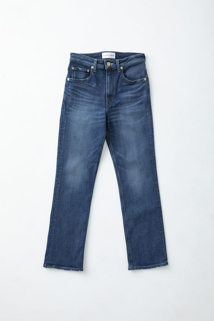 The Sapphire Jean has a high-rise with a straight-leg which makes for an ultra-flattering slimming silhouette. This stovepipe-fit silhouette is crafted from Japanese stretch denim that lets the body move freely. Each hand-finished pair is detailed with signature luxurious gold plated buttons and a custom buttonhole stitch in sapphire.